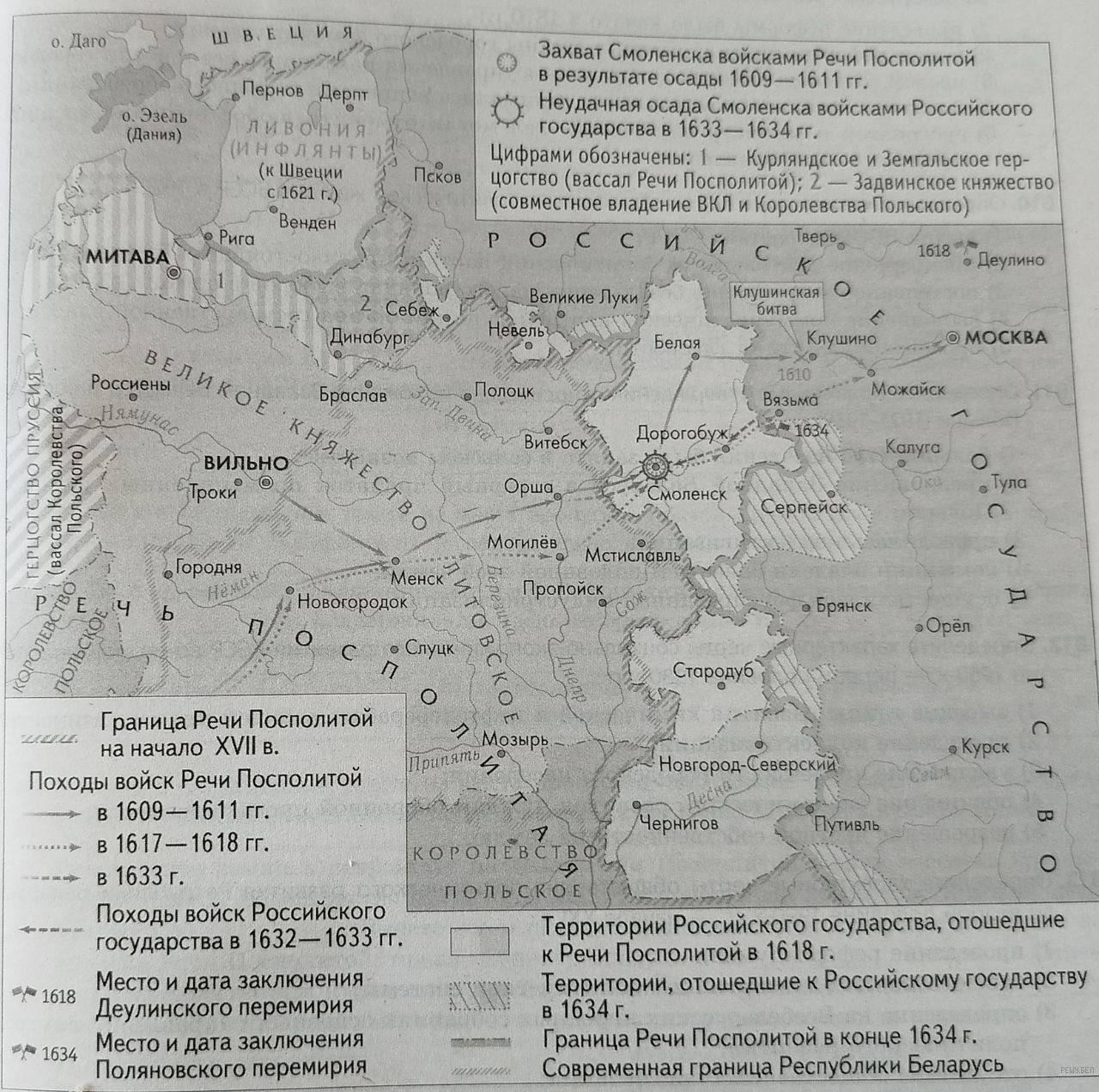 5) Российское государство вернуло в 1634 г. часть территорий, отошедших к Речи Посполитой в 1618 г.