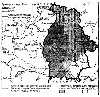 Заштрихованная на карте территория была присоединена к БССР в __________ году.